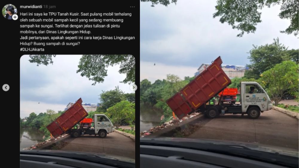 Unggahan akun Threads @murwidianti memicu kontroversi setelah memperlihatkan mobil berstiker UPK Badan Air DLH DKI Jakarta yang disebut sedang membuang sampah ke sungai.