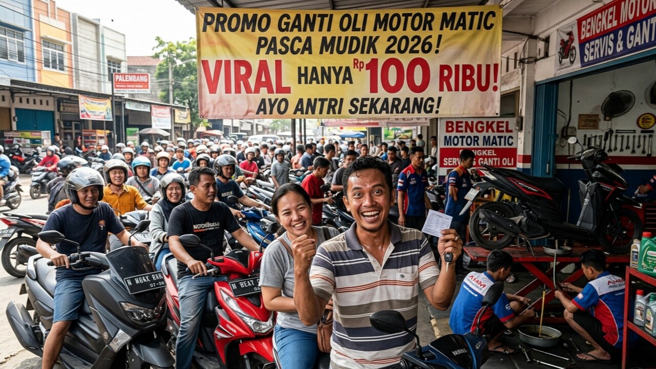 Promo Ganti Oli Motor Matic Pasca Mudik 2026: Harga Rp100 Ribu Bikin Bengkel Diserbu Warga--AI