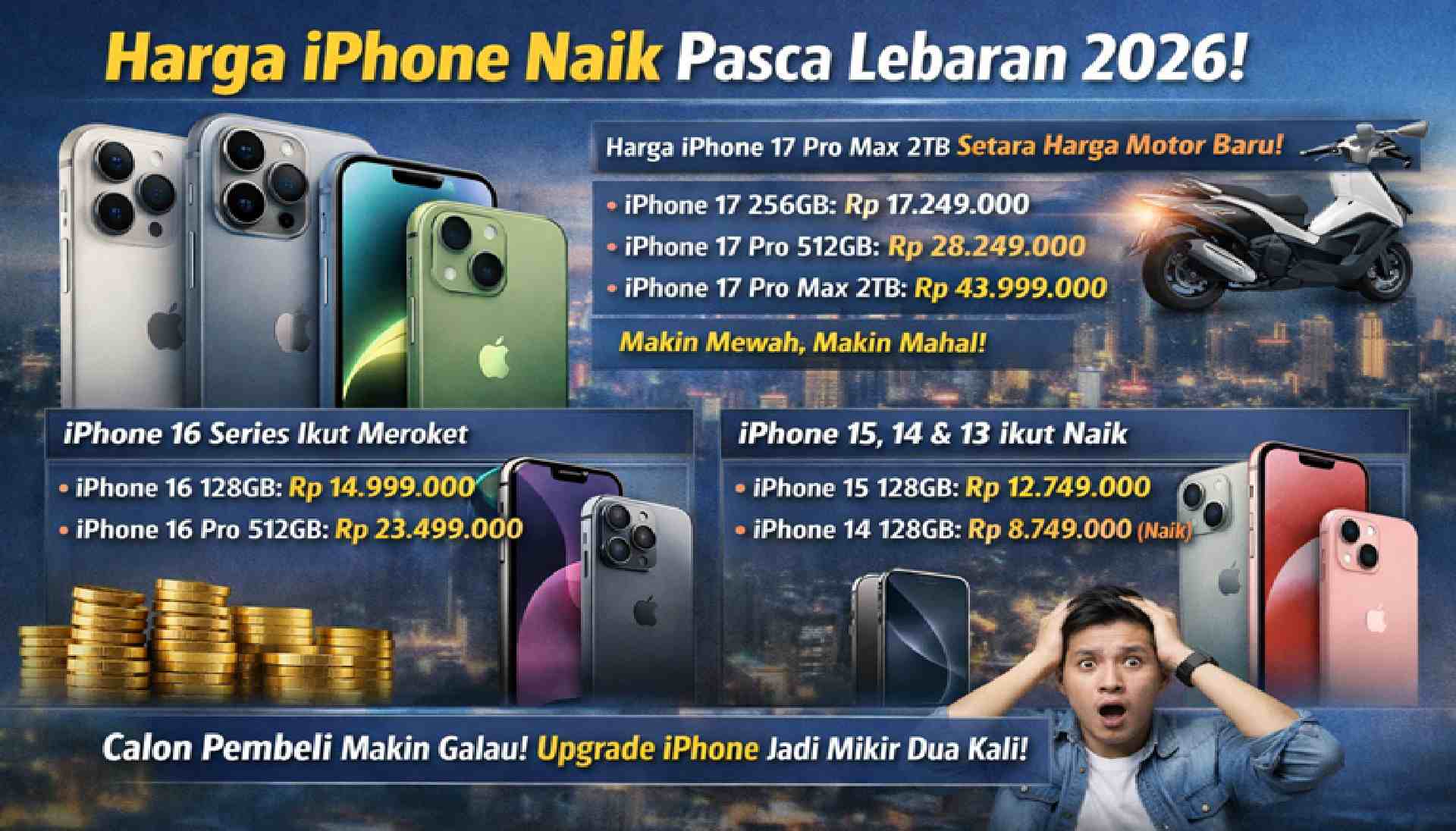 BACAKORAN.COHarga iPhone terbaru 2026 resmi mengalami kenaikan setelah momen Lebaran, membuat banyak calon pembeli mulai berpikir ulang sebelum upgrade.