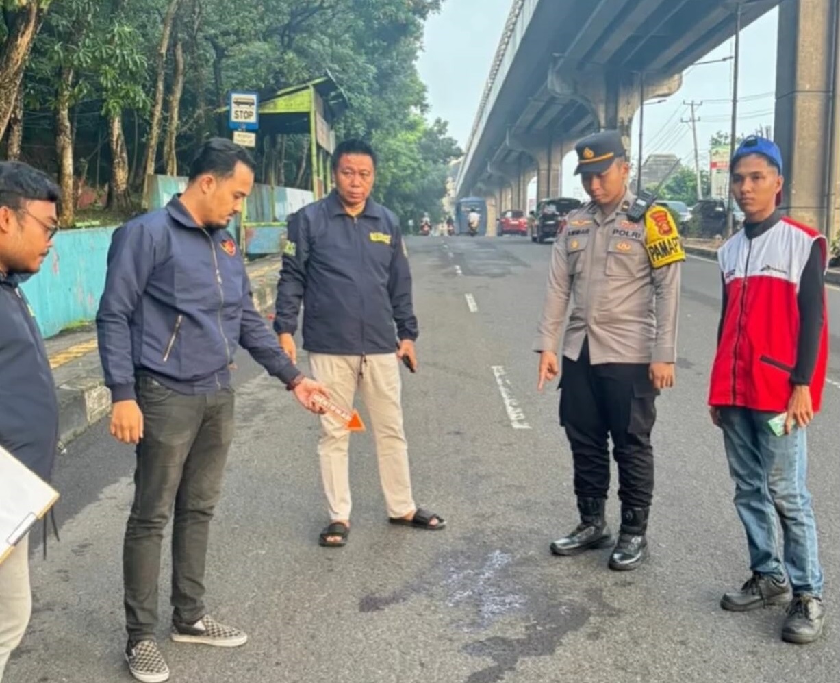 Polisi melakukan oalah Tempak Kejadian Perkara di seberang SPBU Punti Kayu. (foto : ist)--