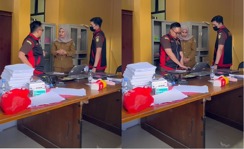 Tim Pidsus Kejari PALI tampak tengah berkomunikasi dan memeriksa arsip elektronik dengan seorang pegawai Dinas Perkim PALI. (foto : tangkapan layar)--