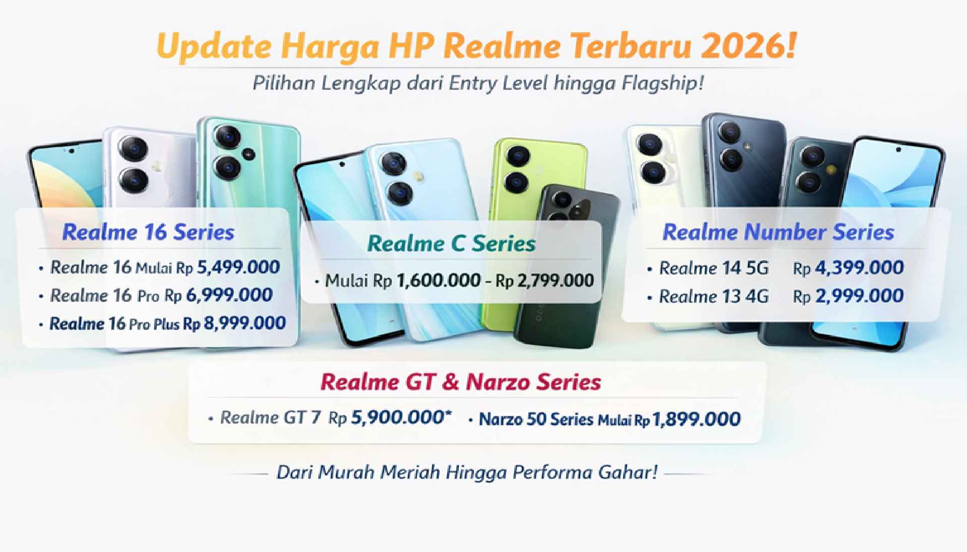 melihat update harga hp realme terbaru 2026, brand ini menawarkan pilihan yang sangat lengkap dari kelas entry hingga flagship dengan harga yang tetap kompetitif.
