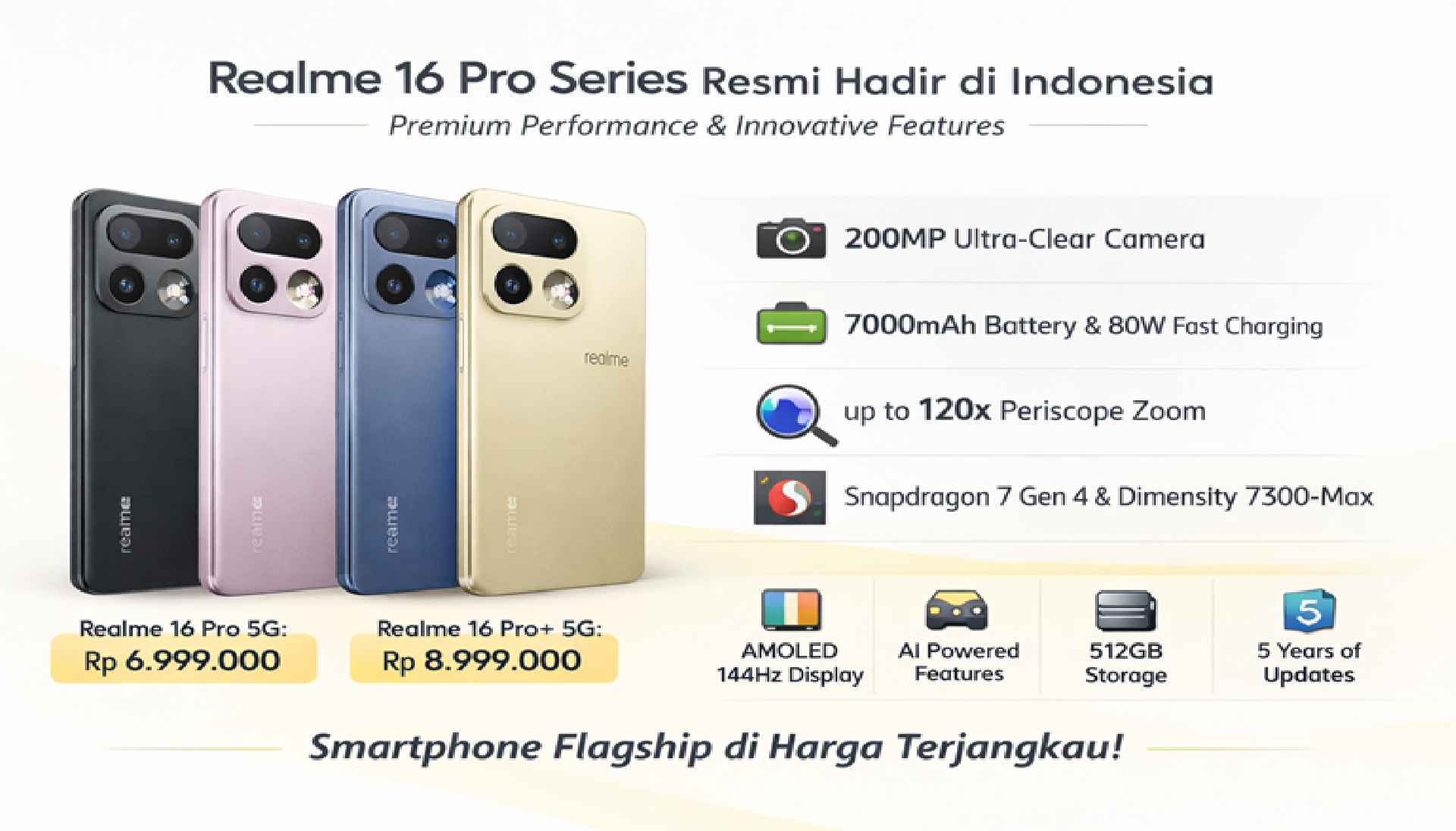 Dengan desain yang lebih premium dan dukungan teknologi terbaru, Realme 16 Pro 5G berpotensi menjadi salah satu smartphone paling diminati di Indonesia sepanjang tahun 2026.