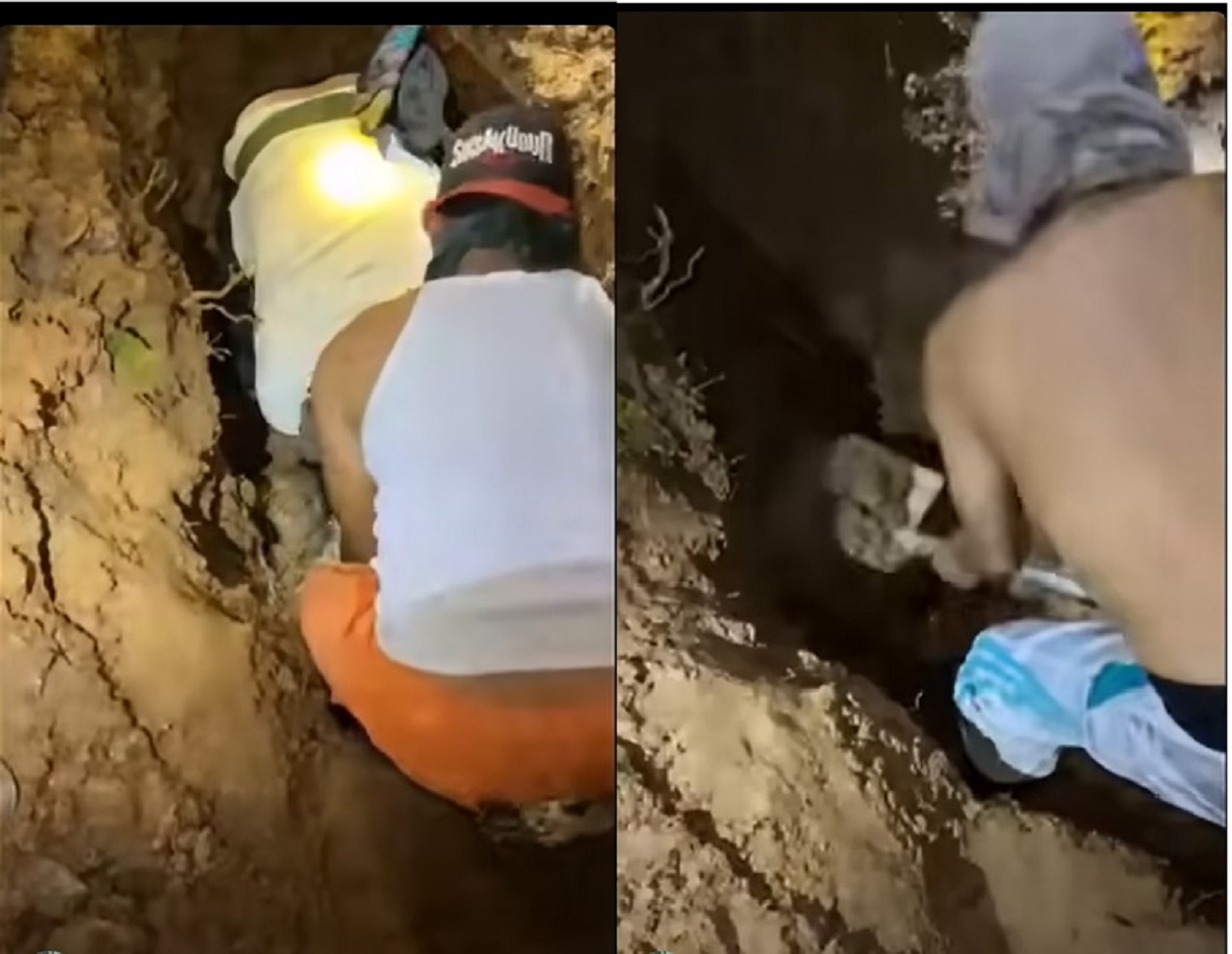 Warga saat menggali kembali lubang yang telah di timbun pelaku. (foto: tangkapan layar)--
