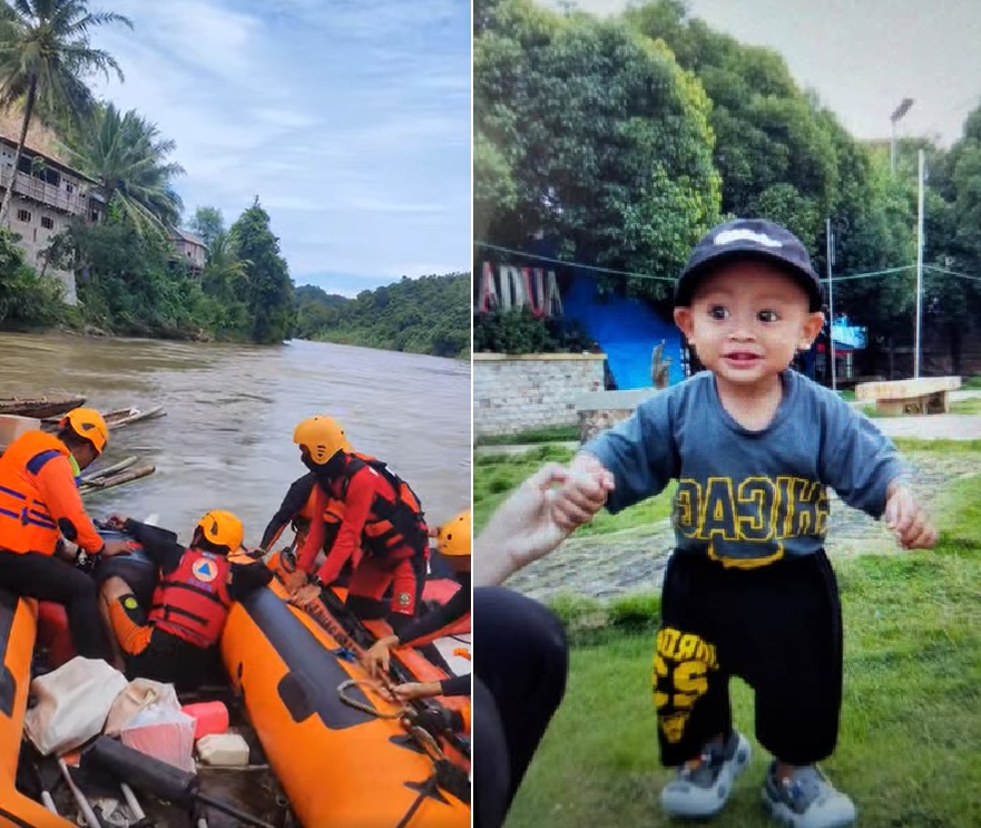 Jasad Findo bin Ridho (2), warga Kampung Masjid, Kelurahan Pasar Muaradua, Kecamatan Muaradua, OKU Selatan, Sumatera Selatan itu ditemukan beberapa kilometer dari lokasi korban tenggelam.