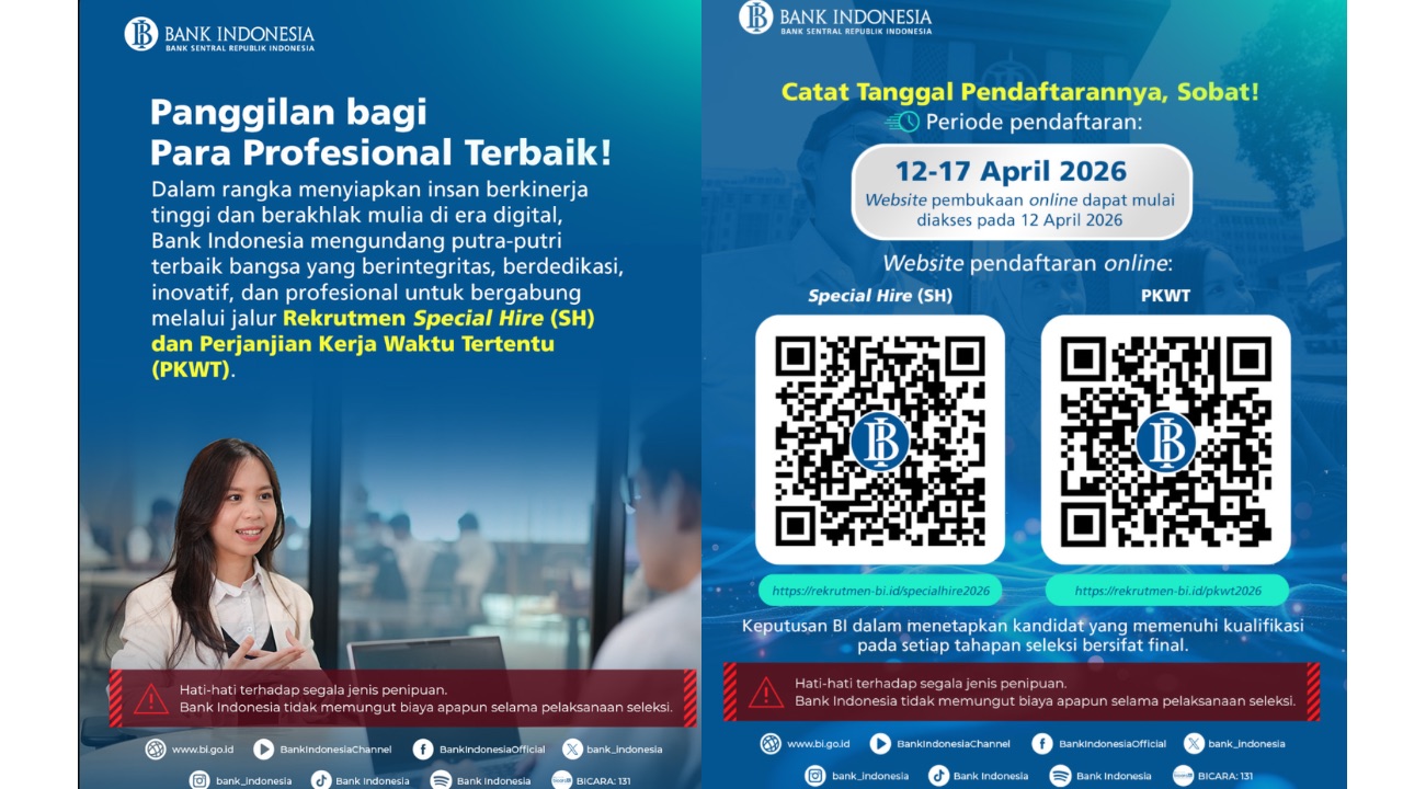 Dalam pengumumannya, Bank Indonesia menegaskan bahwa seluruh proses rekrutmen dilakukan secara transparan dan tidak dipungut biaya apapun.