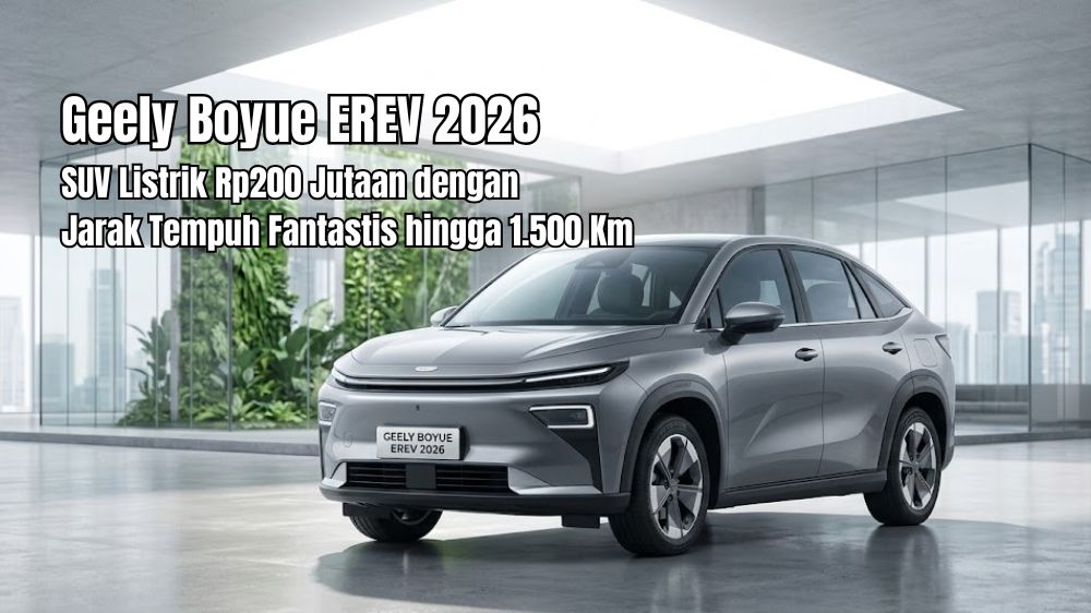 PALEMBANG, BACAKORAN.CO – Geely Boyue EREV 2026 hadir dengan jarak tempuh 1.500 km dan harga Rp200 jutaan, SUV listrik futuristik yang siap jadi game-changer di Indonesia.