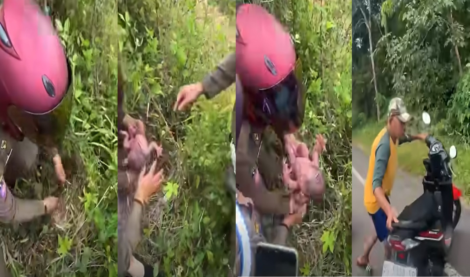 Penemuan bayi di semak-semak tepi jalan Desa Mekarti Jaya, Tebing Tinggi, Kabupaten Empat Lawang , Senin (13/4). (foto: tangkapan layar)--