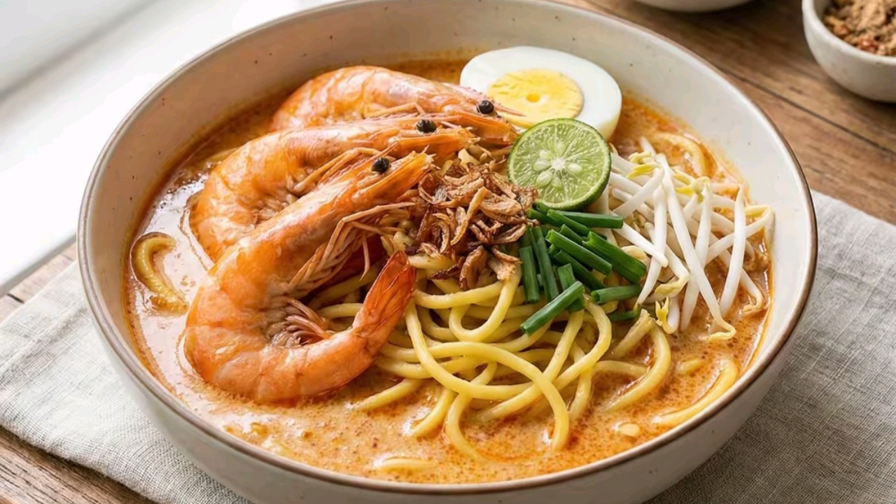 perpaduan antara mie yang kenyal, kuah santan yang kental gurih, aroma udang yang khas, ditambah kesegaran jeruk limau... wuihh, kombinasi rasanya sungguh sempurna!
