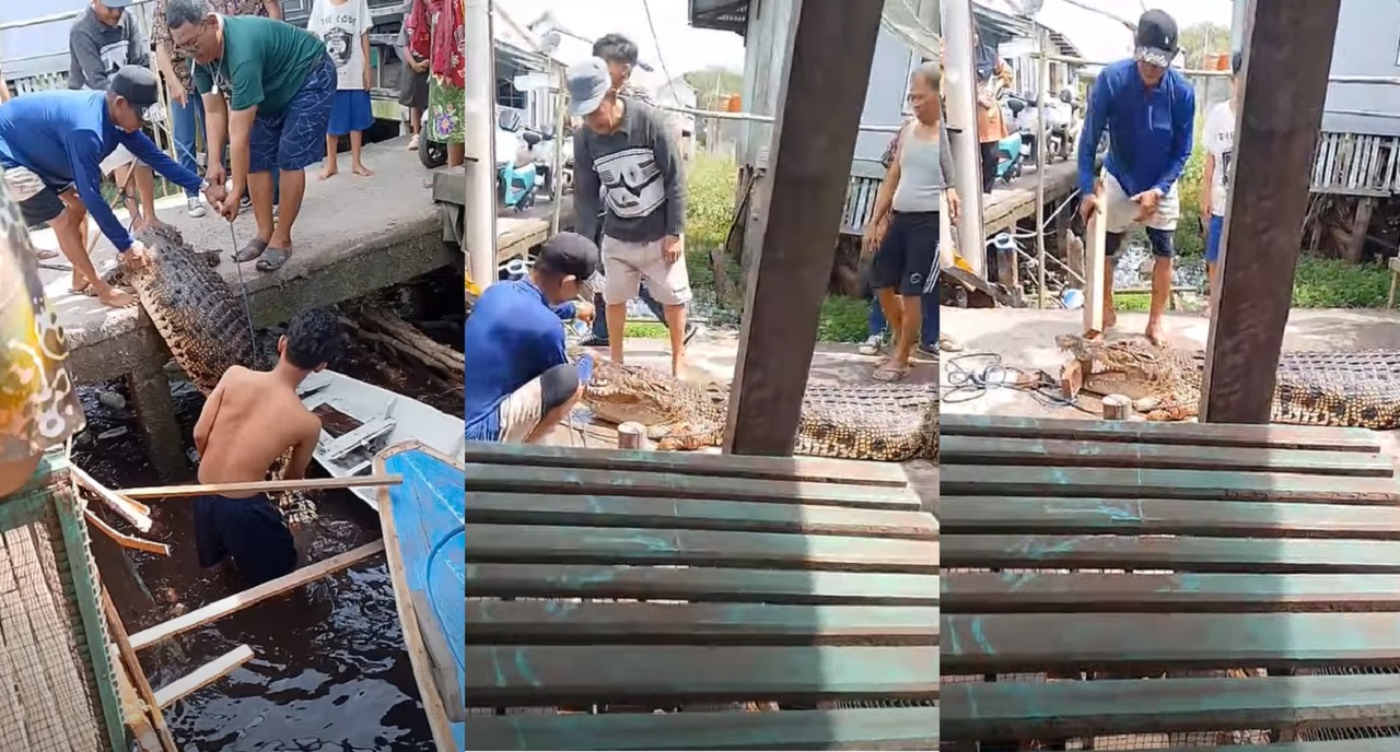 Ih Ngeri, Warga Tulung Selapan Angkat Buaya Besar Tanpa Alat Pengaman