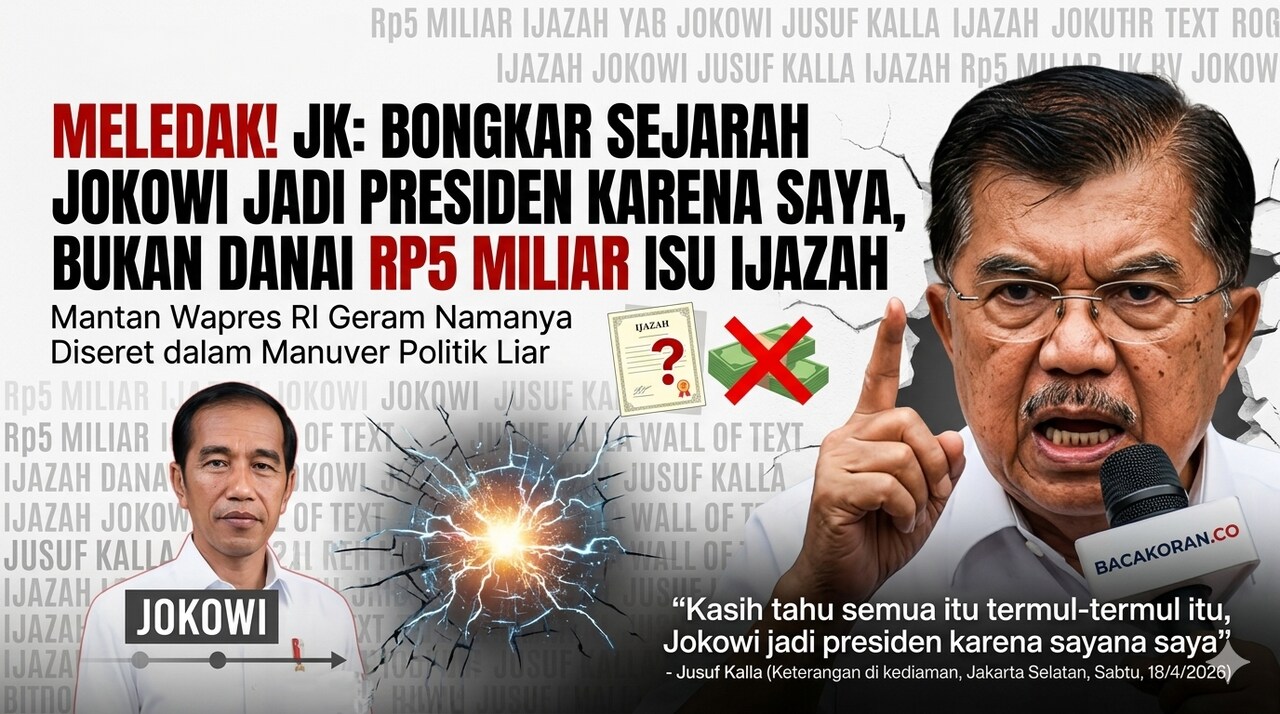BACAKORAN.CO - Jusuf Kalla meledak dan tak bisa menyembunyikan kemarahannya setelah dituduh mendanai polemik ijazah Presiden Joko Widodo senilai lima miliar rupiah.