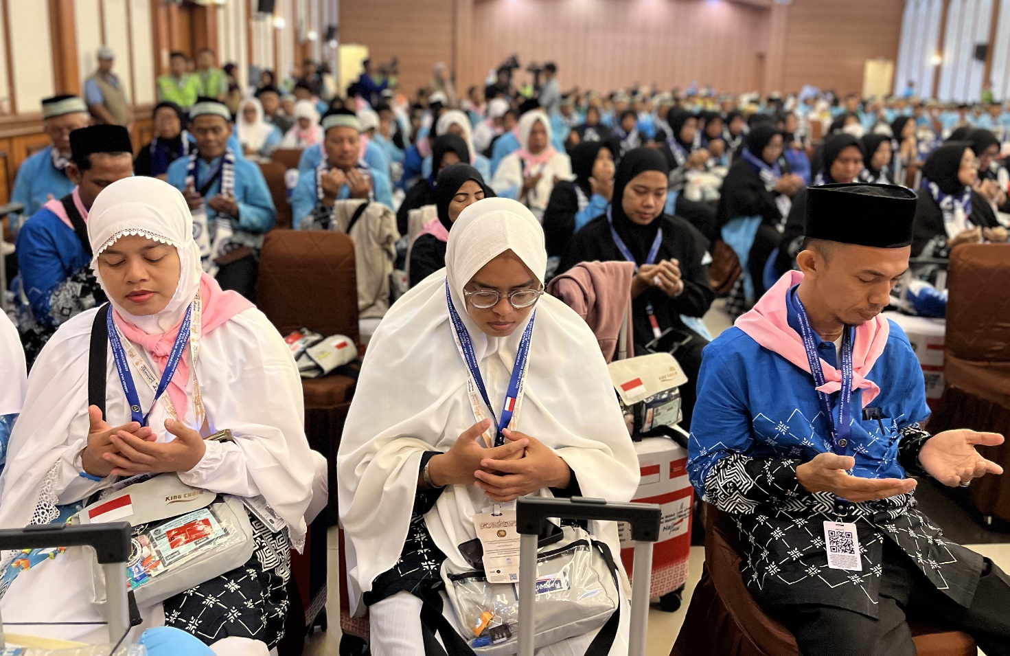 Jamaah Haji Indonesia ketika berdoa jelang keberangkatan ke Arab Saudi.-Kemenhaj-