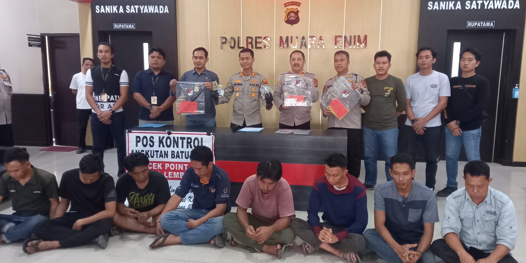 kapolres muara enim, akbp andi supriadi sh sik mh mengatakan, 8 pelaku yang di amankan adalah enam orang merupakan oknum anggota lsm pusaka gumay enim lestari.