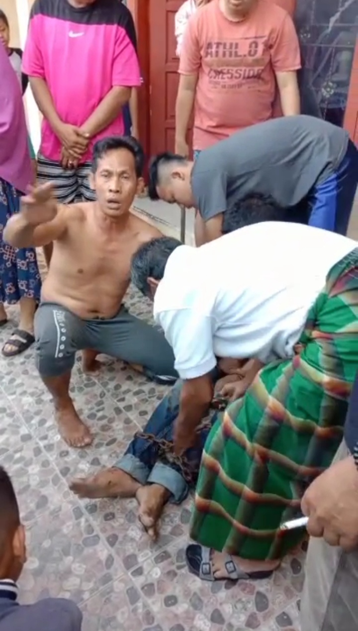 Dalam vidio tersebut, pelaku nampak duduk pasrah dengan tangan dan kaki yang sudah terikat rantai.